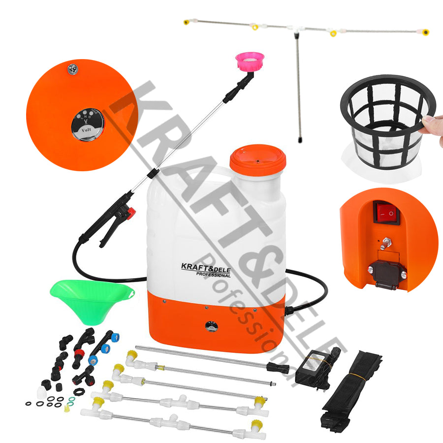 Profesionalna akumulatorska prskalica KRAFT&DELE KD2032 kapaciteta 16 L savršena je za precizno i ujednačeno nanošenje zaštitnih sredstava i gnojiva. Izrađena od kemijski otpornog materijala, jednostavna je za rukovanje i idealna za rad u voćnjacima, staklenicima i povrtlarskim nasadima.