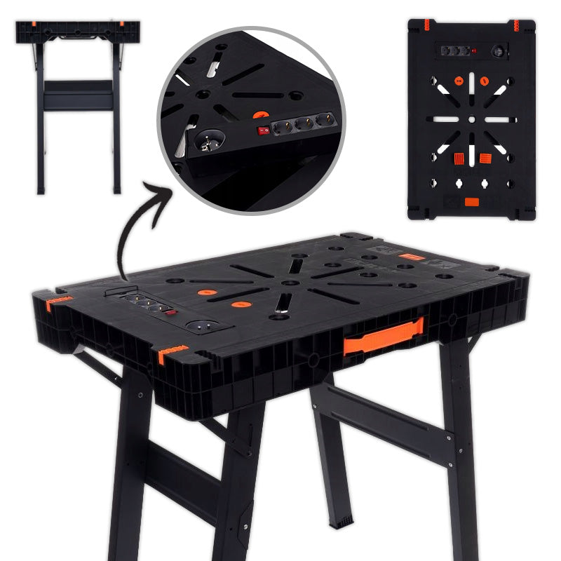 Prijenosni sklopivi radni stol Kraft&Dele predstavlja višenamjenski uređaj savršen za svakog DIY entuzijasta i profesionalca. Izrađen od najkvalitetnijih umjetnih materijala, ovaj radni stol nudi izdržljivost i otpornost na vremenske uvjete, što ga čini idealnim za radionice, skladišta i kućnu upotrebu.