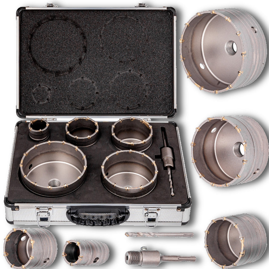 Krune primjerene za suho i mokro bušenje, idealne za upotrebu na električnim bušilicama za bušenje granita, tvrdog kamena, betona i armiranega betona.
