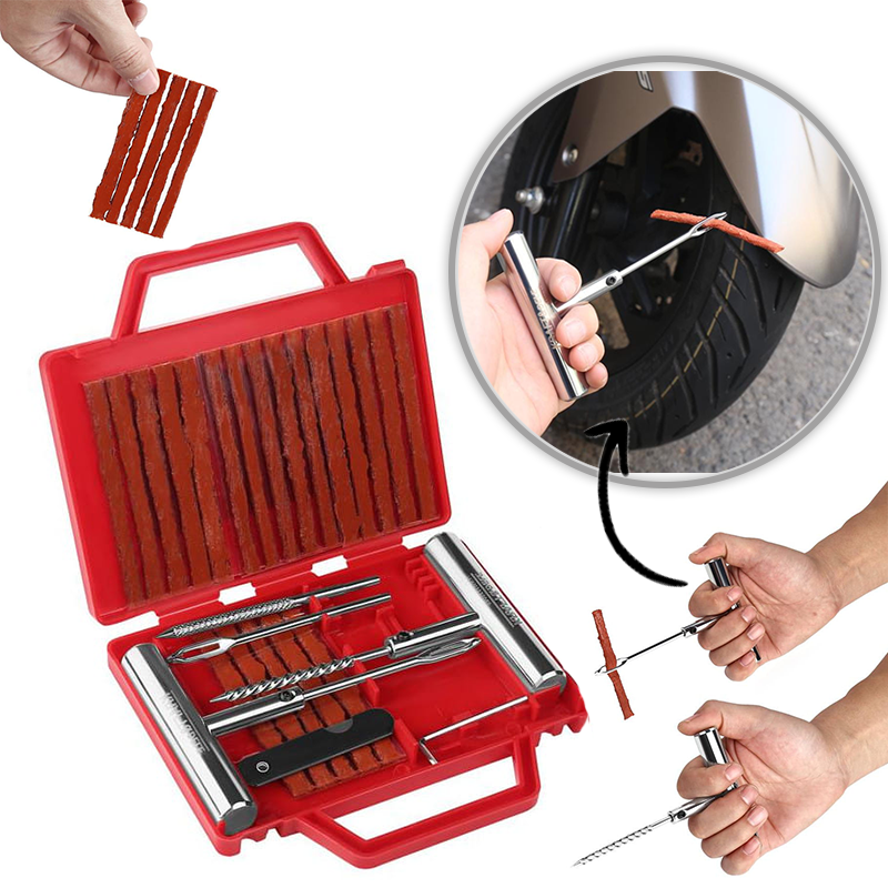 Praktičan set za hitne i brze popravke probušenih guma bez skidanja s felge. Idealan za radionice, vulkanizere i vozače koji žele sigurnost na putu.